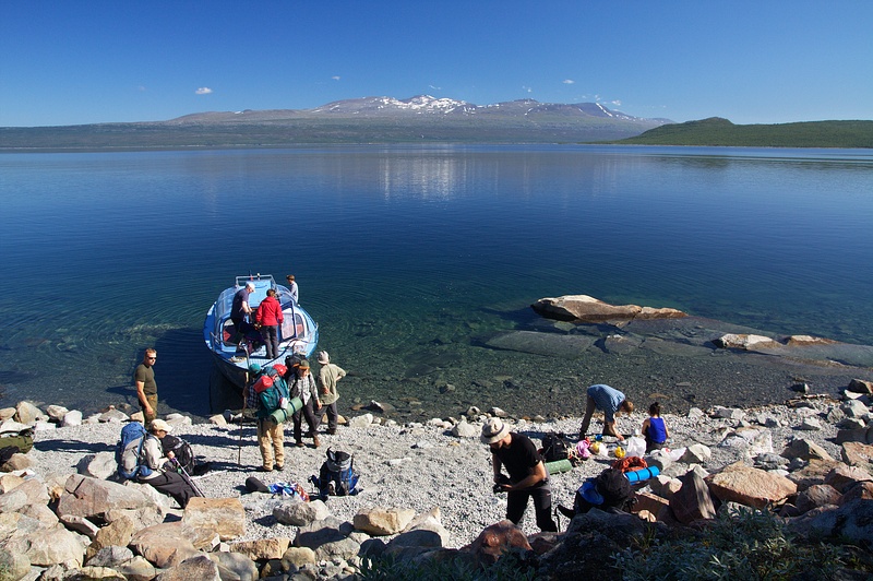 Vyloďujeme se na druhé straně jezera v místě zvaném Änonjalme
