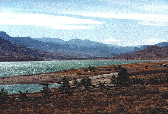 Jak úchvatný byl pohled zhora dolů, tak skvělé byly Bighorny z údolí. Ještě dlouhou dobu byly vidět ve zpětném zrcátku. Do YellowstonuDále jsme pokračovali zajímavou krajinou přes městečka Lovell a Powell až do Cody, odkud jsme po krátkém zdržení ve Wal-martu pomalu stoupali do Yellowstonu. Asi v půli cesty se rozběhla spekulace na téma, zda vůbec bude možné v národním parku natankovat a zda jsme tak neměli učinit již v Cody. Sami jsme ale nakonec správně vydedukovali, že to je obava bezpředmětná, neboť se jedná o území velké jako západní Čechy, takže tam někde ten benzín koupit půjde, vždyť jsme v Americe. Pochopitelně, že tomu tak bylo. U bran národního parku přišla na řadu první zkouška našeho Golden Eagle Passu, jež opravňuje k vjezdu do všech národních parků v USA, stojí 50 dolarů a určitě se vyplatí si ho pořídit. Jenže my měli tento pas zapůjčený od jakýchsi známých, kteří zde byli loni. Pas stále platil a stačilo pouze přikrášlit podpis. Nikde s ním nebyly problémy. Kousek za vjezdem do parku jsme se opět ocitli v solidní nadmořské výšce - 2605 metrů. Po několika dalších mílích se pak otevřel nádherný pohled na Yellowstonské jezero a nekonečné lesy táhnoucí se k obzoru. V dálce bylo vidět i pohoří Grand Teton, které máme v plánu po návštěvě Yellowstonu.