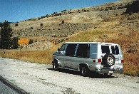 Datum: 9. září 2000 Opouštíme Bighorn MountainsKdyž jsme ráno vystrčili hlavy ze svých spacáků a vykoukli ven, byli jsme překvapeni poměrně velkým stádem krav, které se líně procházelo lesem, v němž se nacházel náš kemp. Mě osobně překvapilo i pěkné prostředí, ve kterém jsme přenocovali a o kterém jsme při příjezdu neměli vlastně ani tušení. Méně příjemným překvapením bylo počasí. Byla docela zima a ze zatažené oblohy sem tam vypadávaly drobné srážky, které se podobaly více sněhu než dešti. Při chystání se na cestu se zjistilo, že jedním z největších nepřítelů na cestě bude asi nepořádek uvnitř auta, a že bojovat se proti němu musí systematickým a organizovaným balením. Také se zjistilo, že od okamžiku procitnutí do odjezdu uplynou přibližně dvě hodiny. Zatažená obloha nás provázela prakticky celou cestu pohořím Bighorn mountains, které se ale i přesto (nebo právě proto) ukázalo jako nádherný kus Země. Jejich vrcholná chvíle se dostavila v okamžiku, kdy jsme vystoupali na jeden z nejvyšších bodů na cestě, k průsmyku ..... vysokému 2874 metrů n. m. Odtud se nám naskytl přenádherný dechberoucí pohled do údolí hluboko pod námi. Tam se rozprostírala nekonečná pustina a v dálce bylo již vidět další pohoří, ve kterém se nachází nejstarší národní park na světě, Yellowstone, náš dnešní cíl.